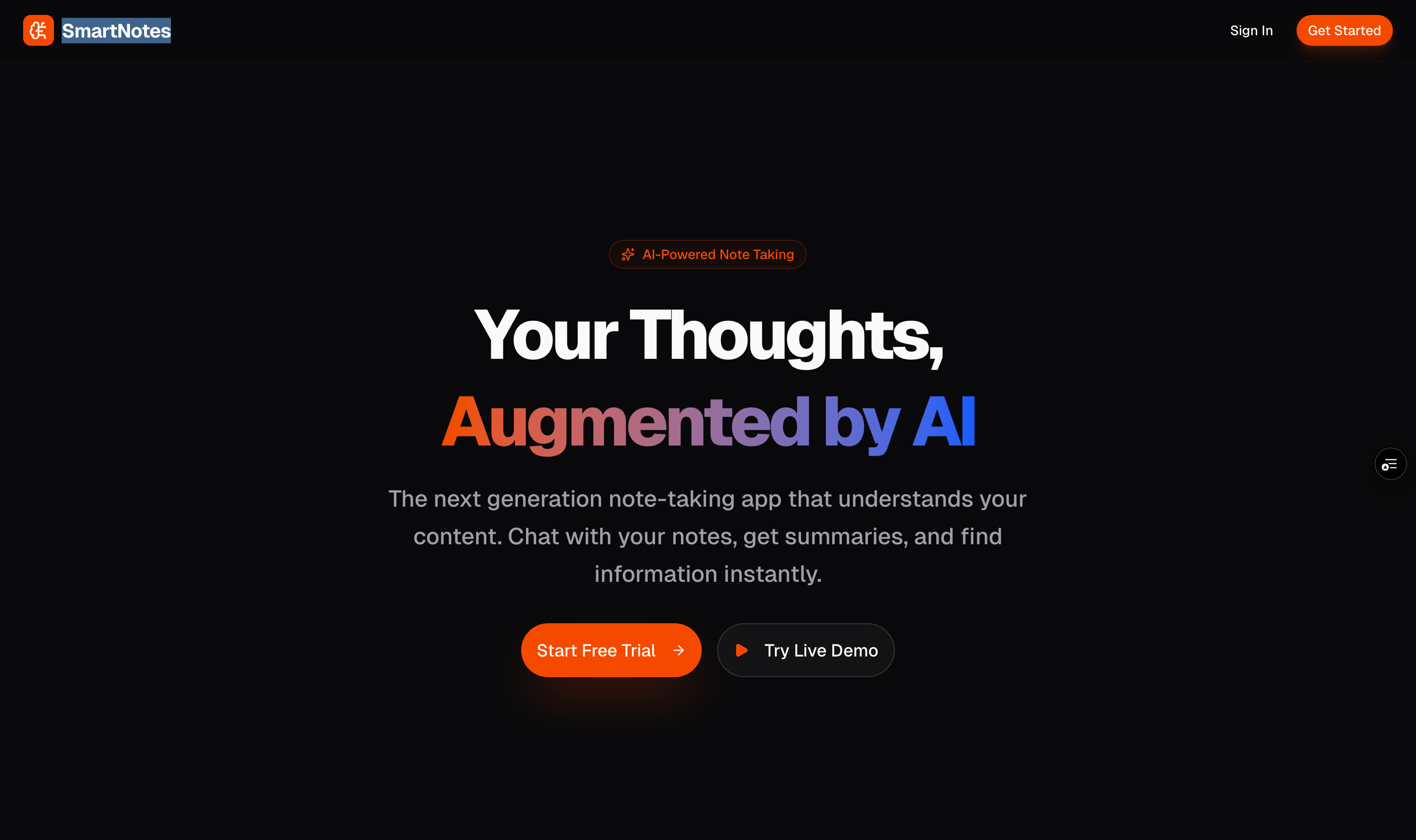 Smart Notes is a modern productivity application designed to transform static personal knowledge into an interactive, AI-powered experience. Built for students and professionals who need to manage growing volumes of information, this project addresses the difficulty of quickly retrieving specific details from historical notes.