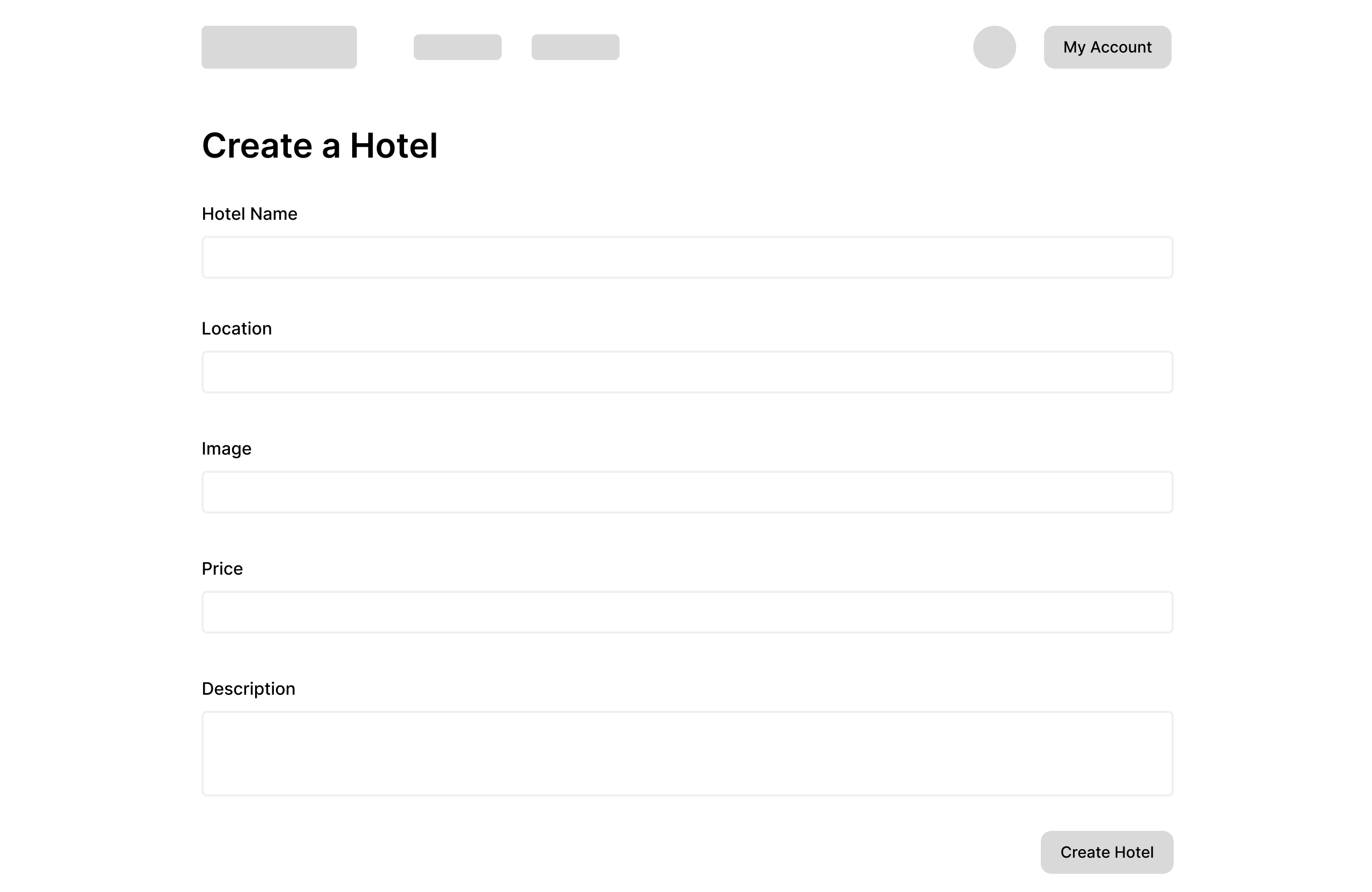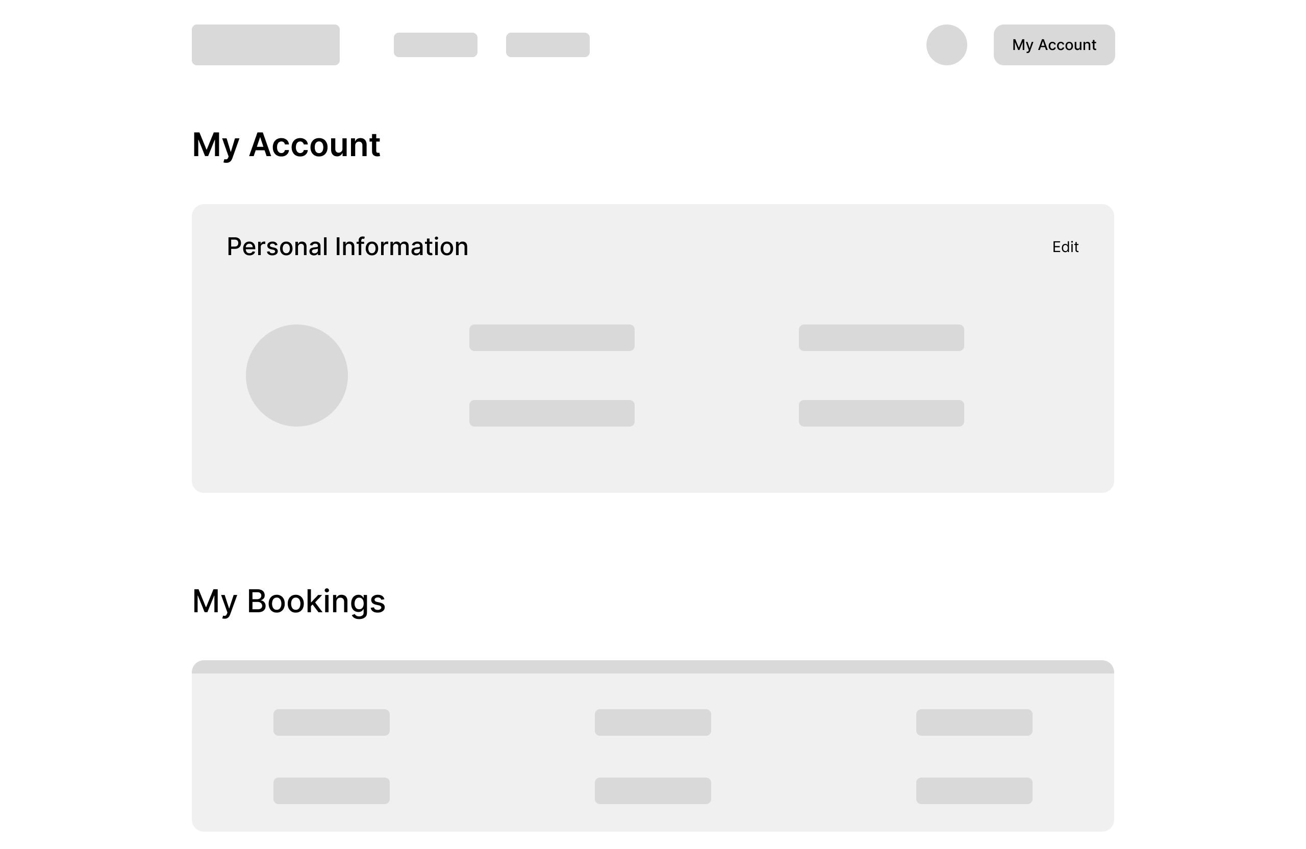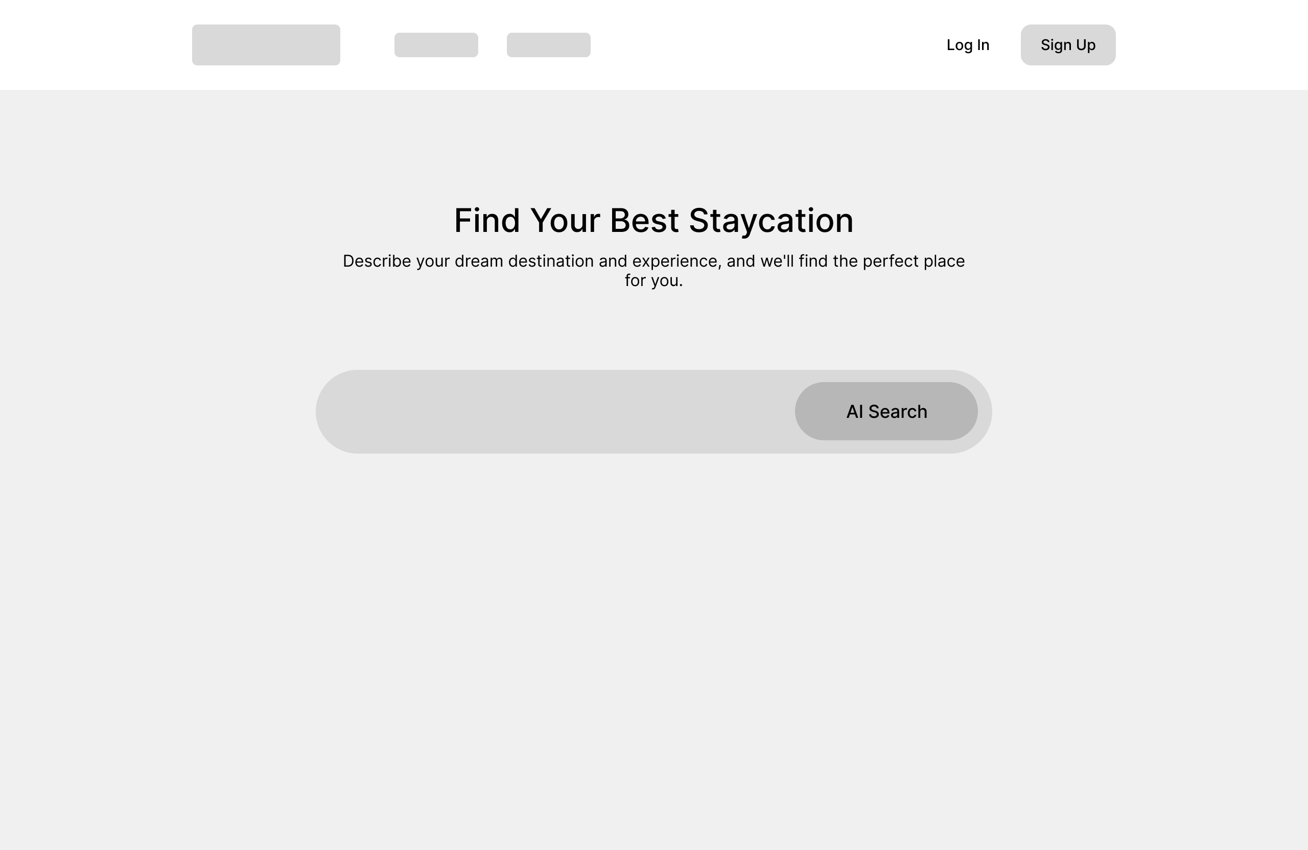 Early wireframes were created using Figma to visualize the landing page with the AI search interface, the my account page, and create hotel page.